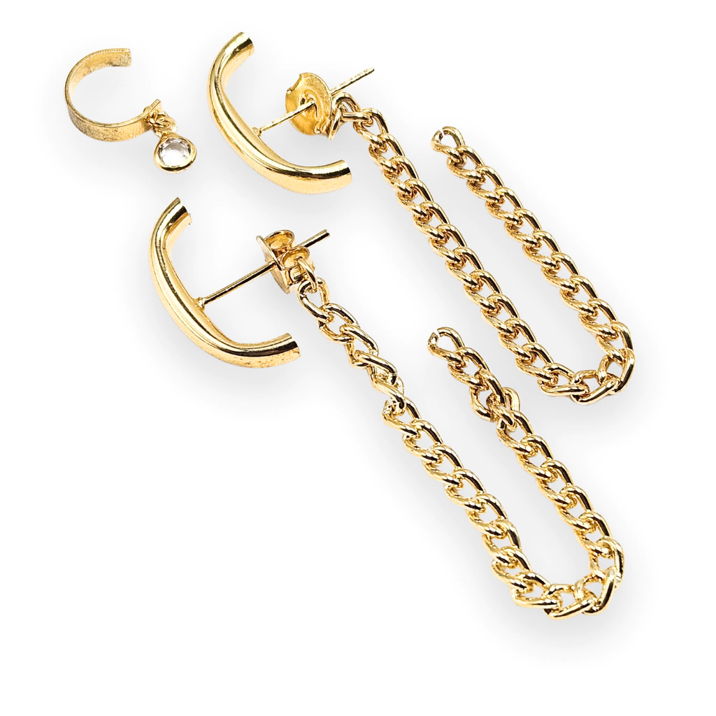 Com design marcante e caimento fluido, o Brinco Júpiter traz o movimento das correntes em uma peça cheia de atitude. O detalhe do piercing fake adiciona um toque ousado e moderno, ideal para quem busca um visual poderoso e cheio de estilo.